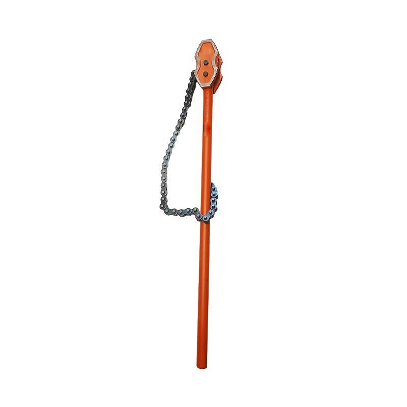 آچار زنجیری EGA Master 61038 که از فولاد فورج شده ساخته شده است، برای گرفتن و چرخش لولهها در فضاهای محدود طراحی شده است. این مدل دارای دستهی طولانی (۱۲۰۰ میلیمتر) و زنجیر فولادی خاص است که قدرت گیرهی بالا و دوام زیاد را فراهم میکند. فکهای آچار سختی تا ۶۰ HRc دارند که توسط عملیات دو مرحلهای افزایش یافتهاند. سیستم دو فک (double-jaw) باعث میشود عملکردی مشابه چرخ دنده در هر دو جهت داشته باشد. این آچار برای لولههایی با ظرفیت تا ۸ اینچ مناسب است.