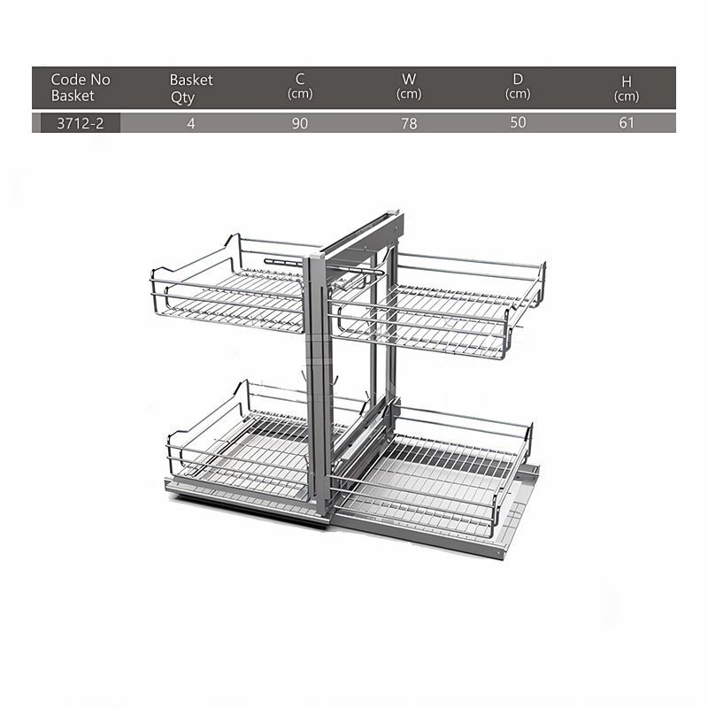 سبد مجیک کرنر پلاتین با طراحی کاربردی برای کابینتهای ۹۰ سانتی، امکان استفاده حداکثری از فضاهای کنجی آشپزخانه را فراهم میکند. ترکیب ریلهای سهتیکه و مکانیزم بلبرینگی موجب باز و بسته شدن آسان و بیصدا میشود.